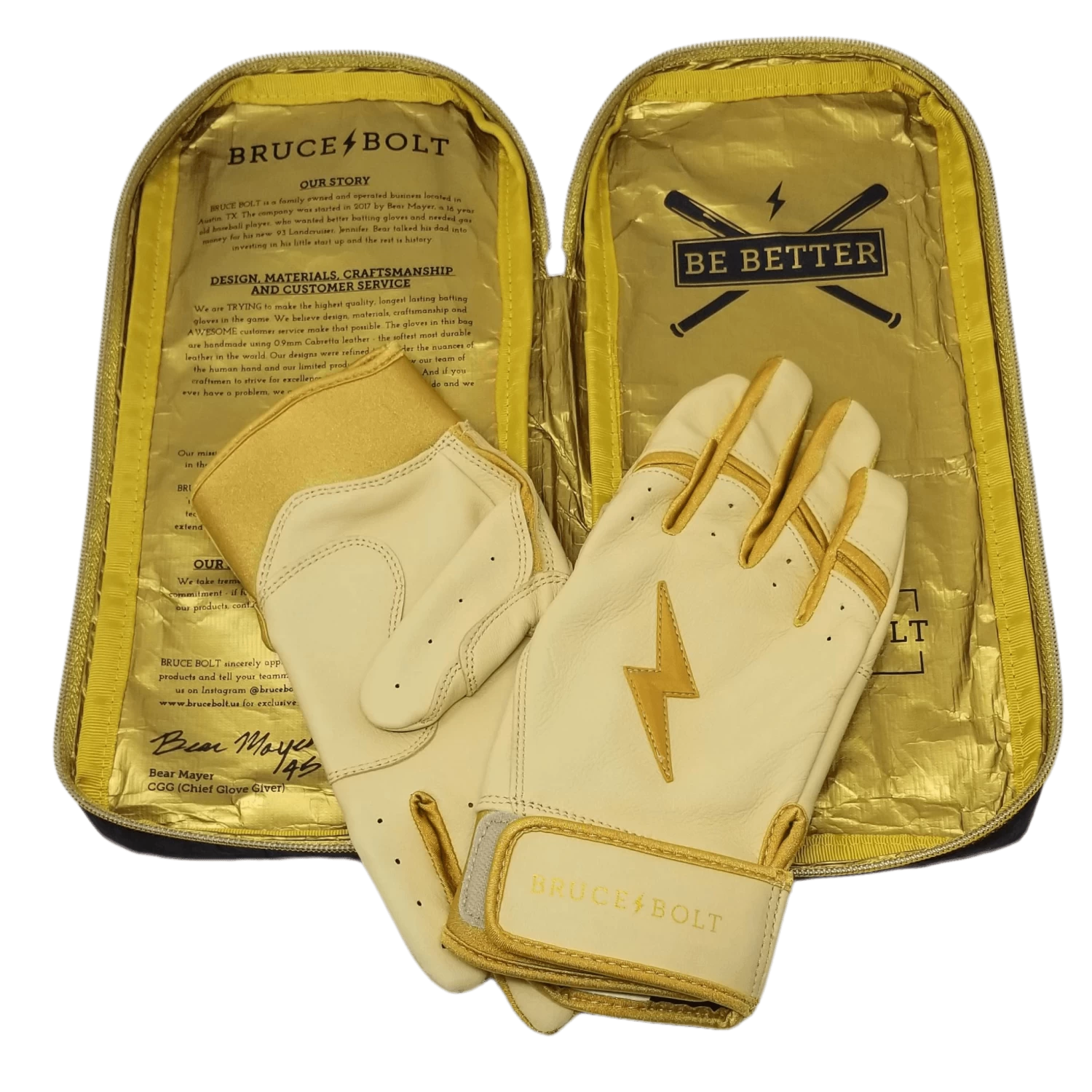 Bruce Bolt PREMIUM PRO Gold Series Batting Gloves: Short Cuff