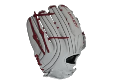 Miken Pro Series 13.5″ Slow Pitch Fielding Glove – White/Scarlet/Navy: PRO135WSN