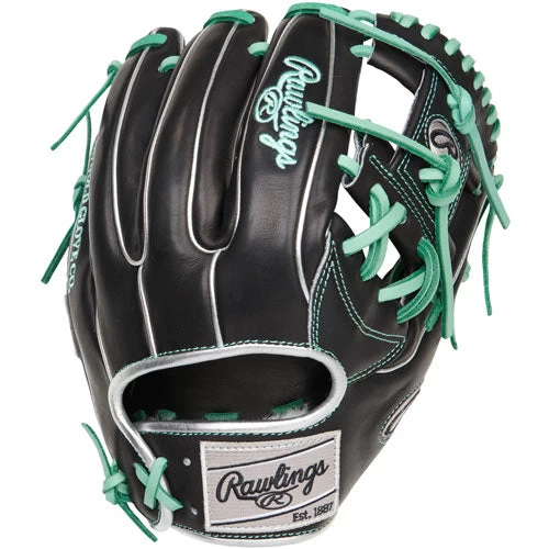 In addition, all Pro Preferred gloves feature Pittards sheepskin palm lining, which provides optimal comfort and wicks away moisture. As a result, your hands stay dry in any playing conditions. For additional comfort, its wool wrist strap promotes lasting comfort to the back of your hand, and our internal wool padding allows you to form the perfect pocket. You’ll get maximum comfort and control every time you put on this classic black glove. It even comes with the perfect splash of color thanks to it’s mint lacing and silver Rawlings patch and ‘Oval-R.’